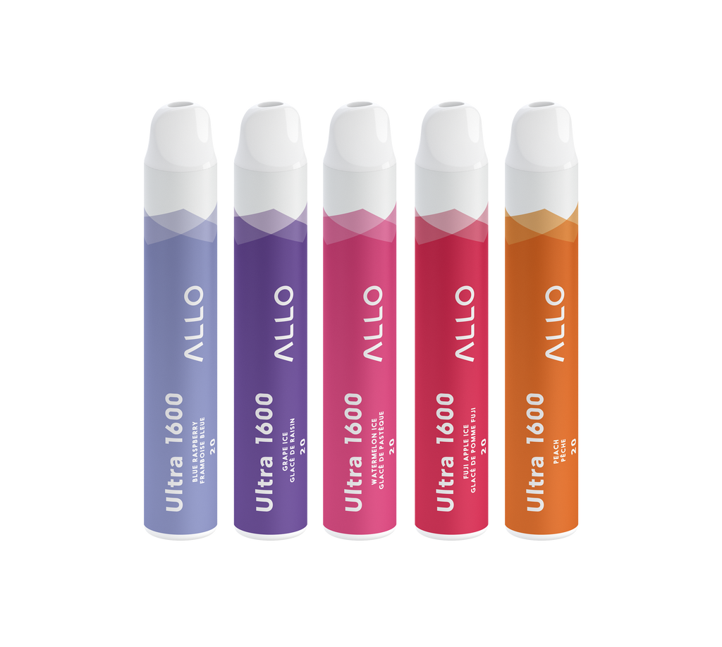 The device specifications of the Allo Ultra Disposable include up to 1600 puffs, a 1000 mAh battery, and a 6.8 mL liquid volume. You can enjoy a premium vaping experience anywhere, anytime, without having to worry about recharging or refilling. Get your Allo Ultra Disposable today and experience the best vaping experience throughout Ontario, Scarborough, Toronto, Quebec, Nova Scotia, and all across Canada!