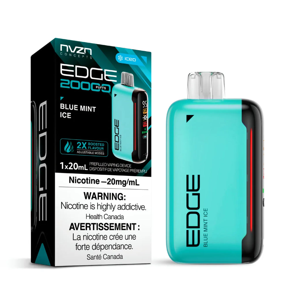 Introducing the NVZN Edge: The Edge leverages top-of-the-line e-liquid and battery capacity to push the performance of each vaping session with a massive 20,000 puff prefilled vaping device. Experience massive sales margin per device, maximizing value for both users and retailers alike. Effortlessly switch between dual-coil 'Turbo Mode' and single-coil 'Regular Mode'. Utilize the expansive LED screen to obtain precise details about your current battery status, e-liquid levels, and mode level. The LED light bar shifts from blue (Regular Mode) to red (Turbo Mode) to indicate different modes.